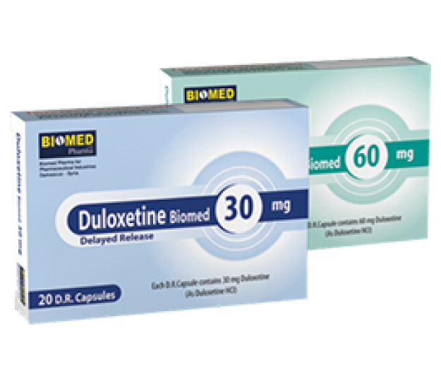 دولوكسيتين بيوميد 60 مغ: عبوة تحوي 20 كبسولة ( حبيبات متأخرة التحرر).
